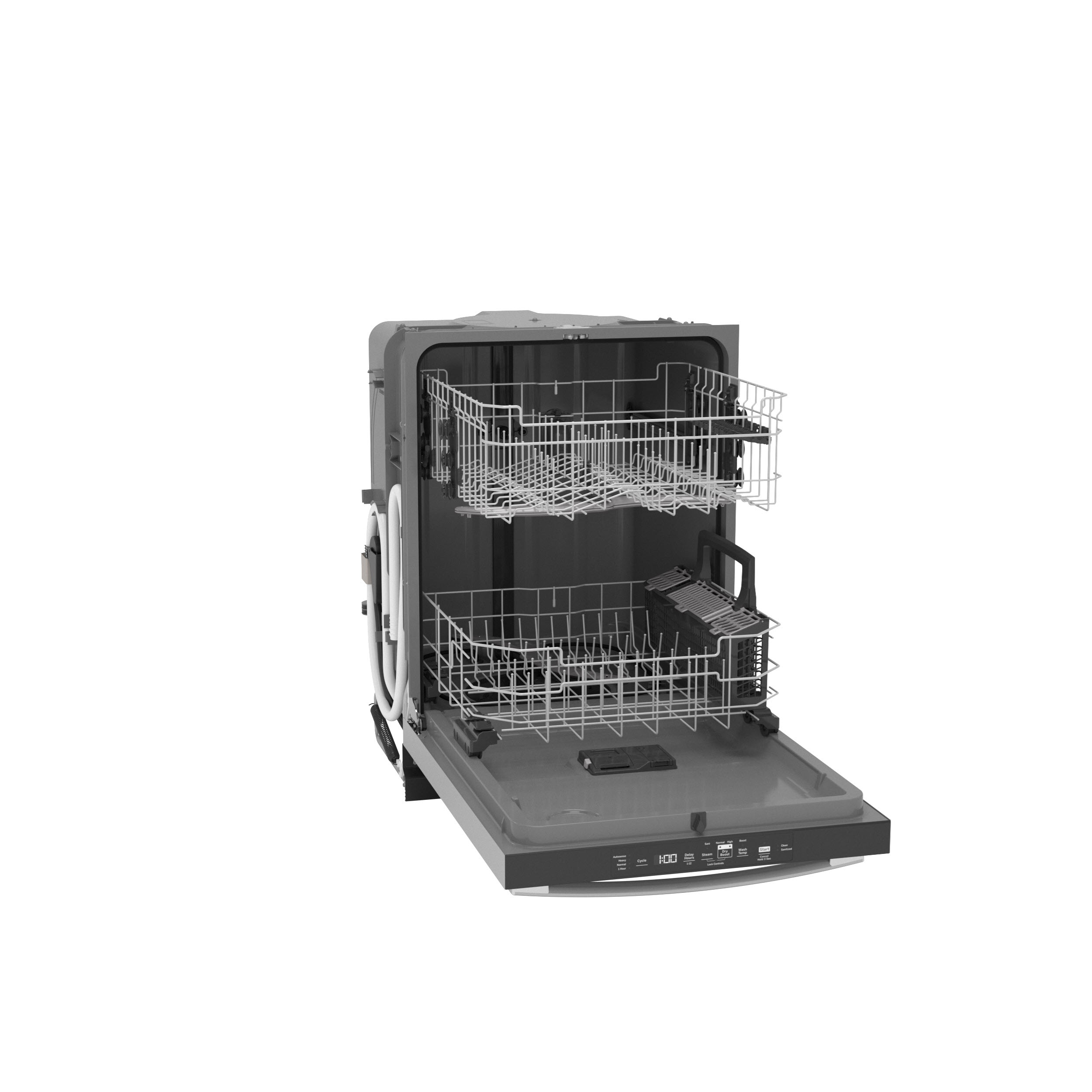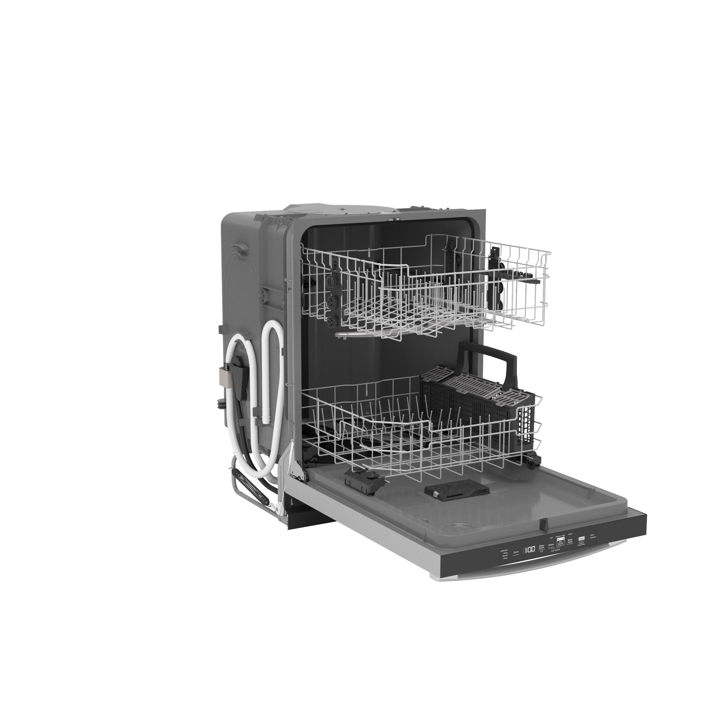 - Save time with a Steam option that loosens tough soils before the wash cycle begins, so you get a complete clean with no pre-rinsing or soaking necessary. Plus, a Sanitization cycle reduces 99.999% of bacteria on dishes